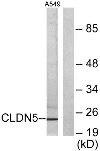 Western Blot analysis of A549 cells using Claudin-5 Polyclonal Antibody diluted at 1:500.