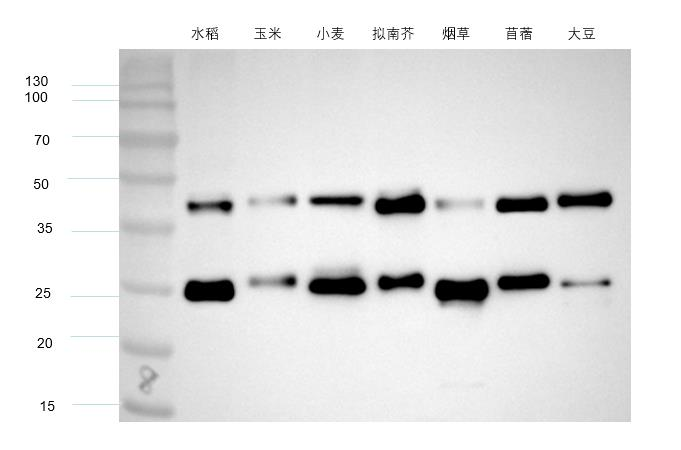 Antibody can detects endogenous Plants GAPDH protein,predict Cross-Reactivity with C.Elegans,Human,Mouse,Rat.