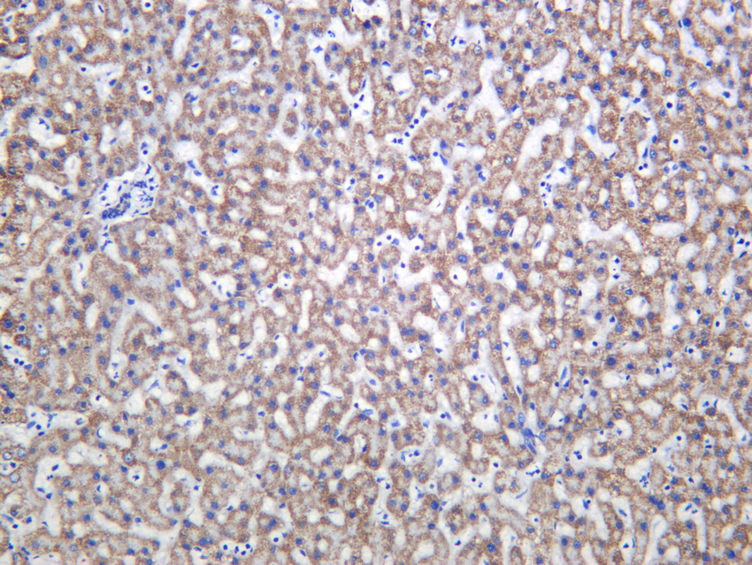 Human liver was stained with anti-UQCRC1 Mouse mAb