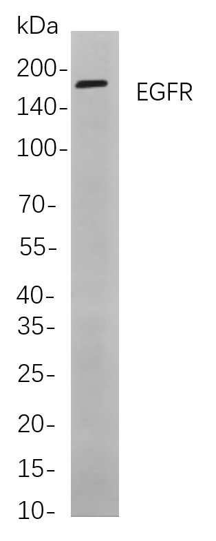 Western blot analysis of lysates from Hela cells, using EGFR Rabbit mAb. The HRP-conjugated Goat anti-Rabbit IgG antibody was used to detect the antibody.