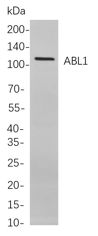 Western blot analysis of lysates from Hela cells, using ABL1 Rabbit mAb. The HRP-conjugated Goat anti-Rabbit IgG antibody was used to detect the antibody.