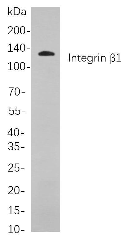 Western blot analysis of lysates from 3T3-L1 cells, using Integrin β1 Rabbit mAb. The HRP-conjugated Goat anti-Rabbit IgG antibody was used to detect the antibody.