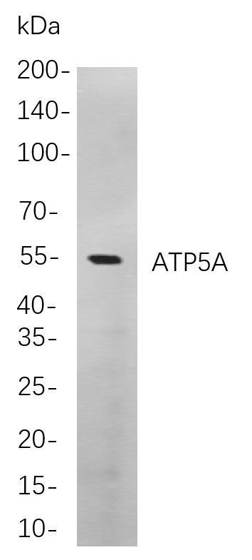 Western blot analysis of lysates from A549 cells, using ATP5A Rabbit mAb. The HRP-conjugated Goat anti-Rabbit IgG antibody was used to detect the antibody.