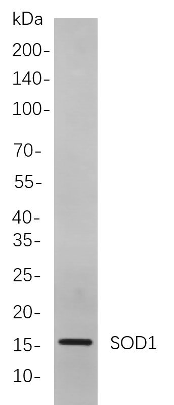 Western blot analysis of lysates from A549 cells, using SOD1 Rabbit mAb. The HRP-conjugated Goat anti-Rabbit IgG antibody was used to detect the antibody.