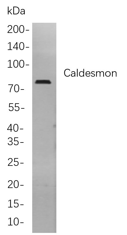 Western blot analysis of lysates from Hela cells, using Caldesmon Rabbit mAb. The HRP-conjugated Goat anti-Rabbit IgG antibody was used to detect the antibody.
