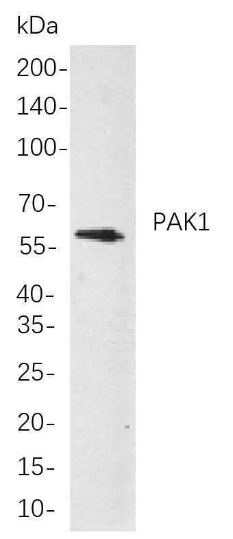 Western blot analysis of lysates from Hela cells, using PAK1 Rabbit mAb. The HRP-conjugated Goat anti-Rabbit IgG antibody was used to detect the antibody.