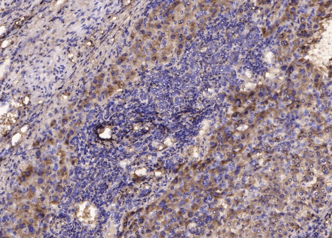 Immunohistochemical analysis of para?n-embedded human Moderately di?erentiated hepatocellular carcinoma Antibody was diluted at 1:200(4° overnight).
