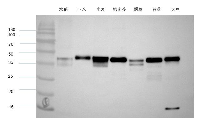 Antibody can detects endogenous Plants GAPDH protein,predict Cross-Reactivity with C.Elegans,Human,Mouse,Rat.