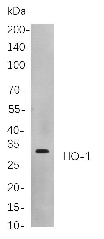 Western blot analysis of lysates from Rat spleen cells, using HO-1 Rabbit mAb. The HRP-conjugated Goat anti-Rabbit IgG antibody was used to detect the antibody.